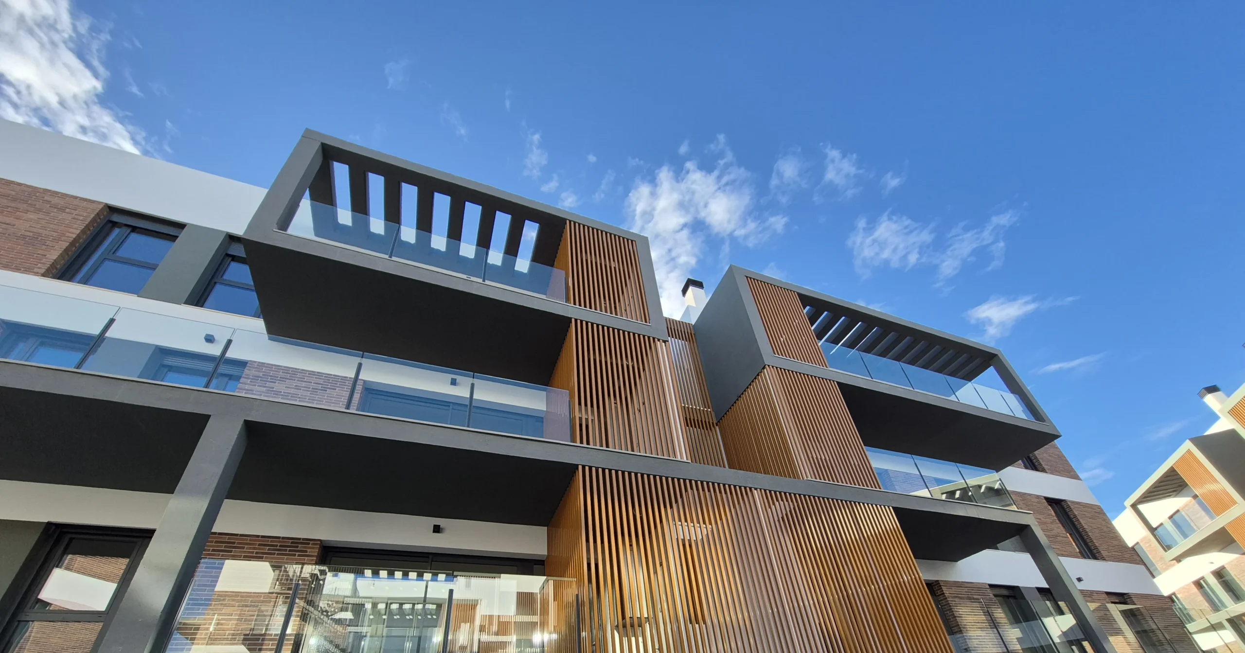 DRIZA es un lugar bonito para vivir. Un residencial con una estética muy cuidada y también muy funcional, que destaca desde las fachadas con ladrillo caravista y hormigón prefabricado.